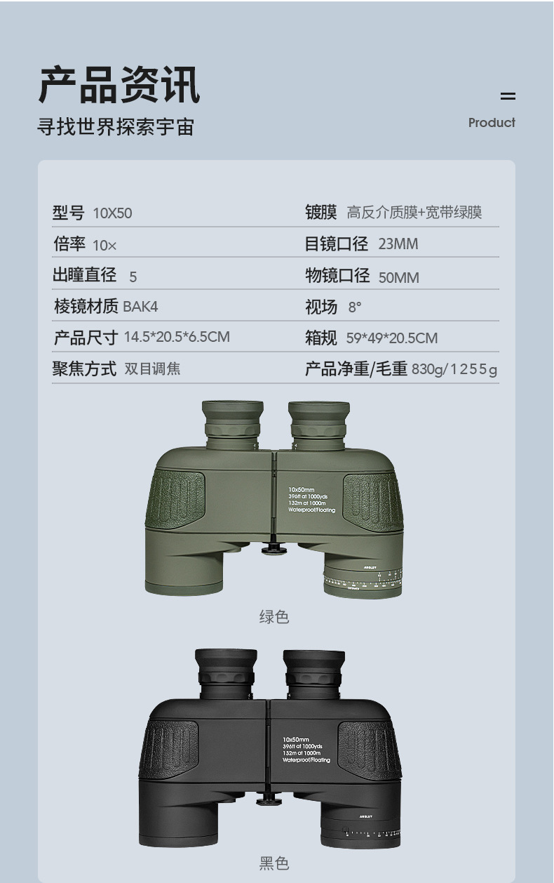 10X50 Binoculars Ed Film High-Magnification High-Definition Outdoor Low-Light Night Vision Distance Measurement Waterproof Telescope For Daily Life