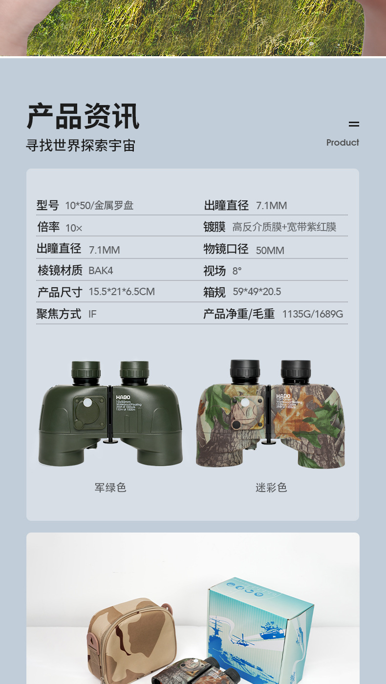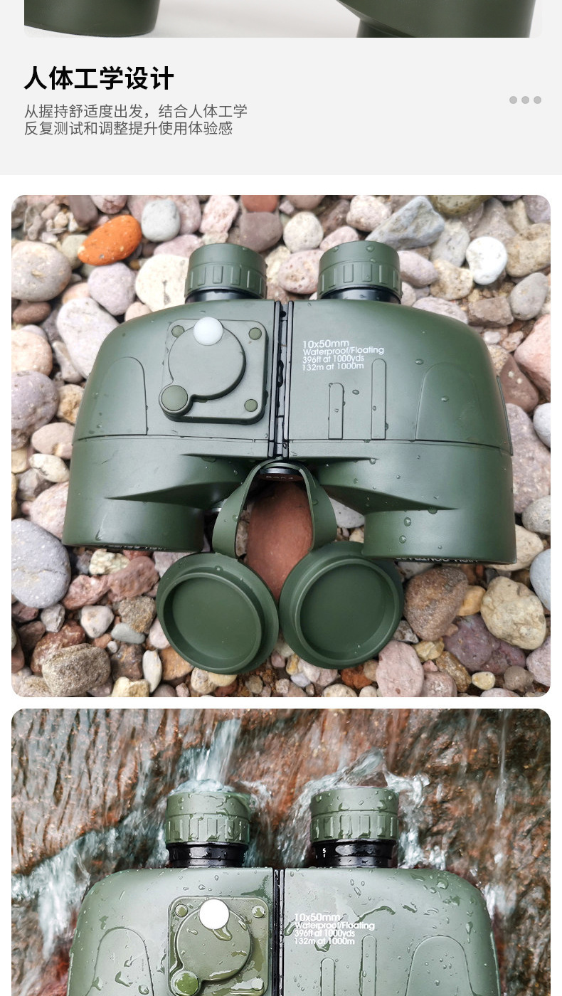 10X50 Compass Telescope All-Metal High-Sealed Distance Measurement Waterproof Outdoor Low-Light Night Vision Binoculars