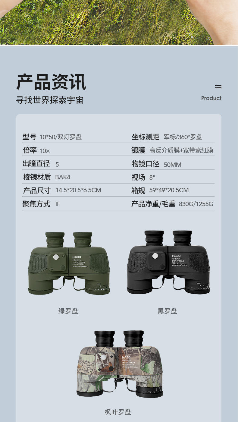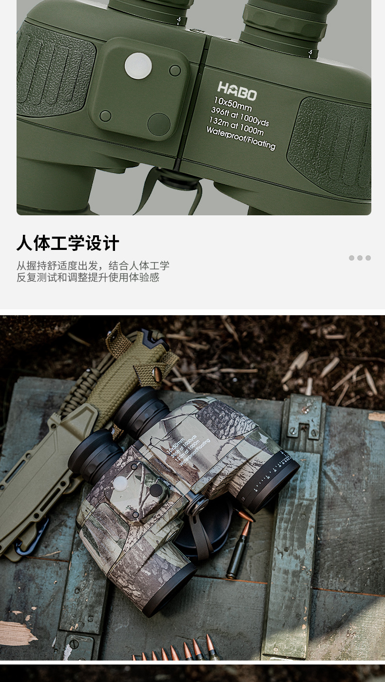 10X50 black compass with light | 10X50 illuminated compass camouflage | 10X50 compass green with light