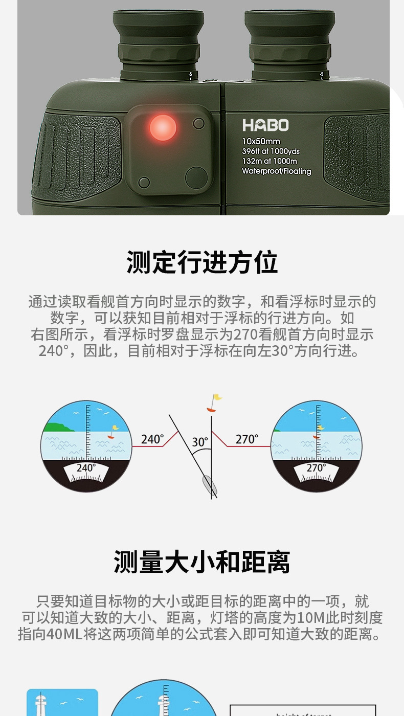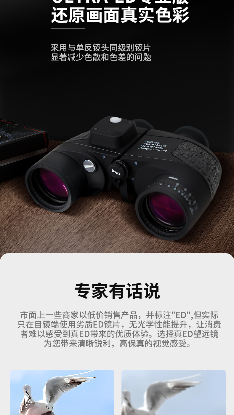 10X50 Marine Compass Binoculars With Waterproof And Anti-Fog Ed Lenses, High-Definition And High-Magnification Infrared Ranging Binoculars