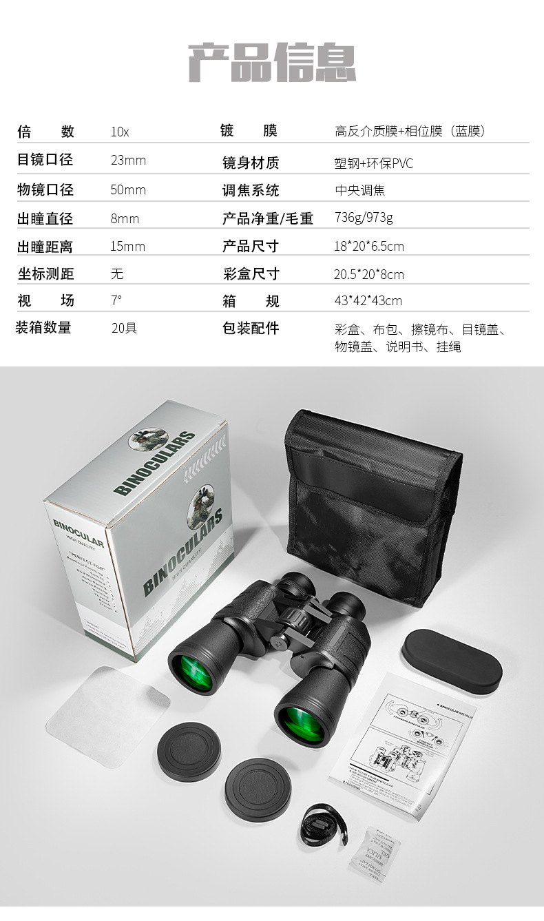 10X50 Rhombic Cb Binoculars High-Definition High-Magnification Low-Light Night Vision Outdoor Portable Mountaineering And Hiking Binoculars