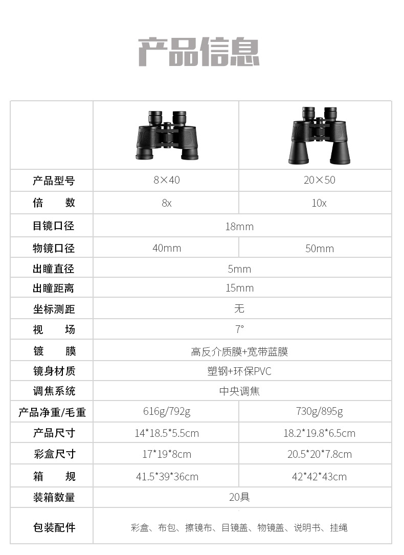 20X50 Binoculars Outdoor High-Definition Day And Night Dual-Purpose Low-Light Night Vision Handheld Mobile Phone Telephoto Cross-Border Distribution