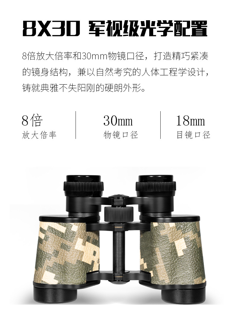 Becos Su-Style 8X30 Mid-Range Binoculars, High-Definition Outdoor High-Definition Portable Low-Light Night Vision, All-Metal