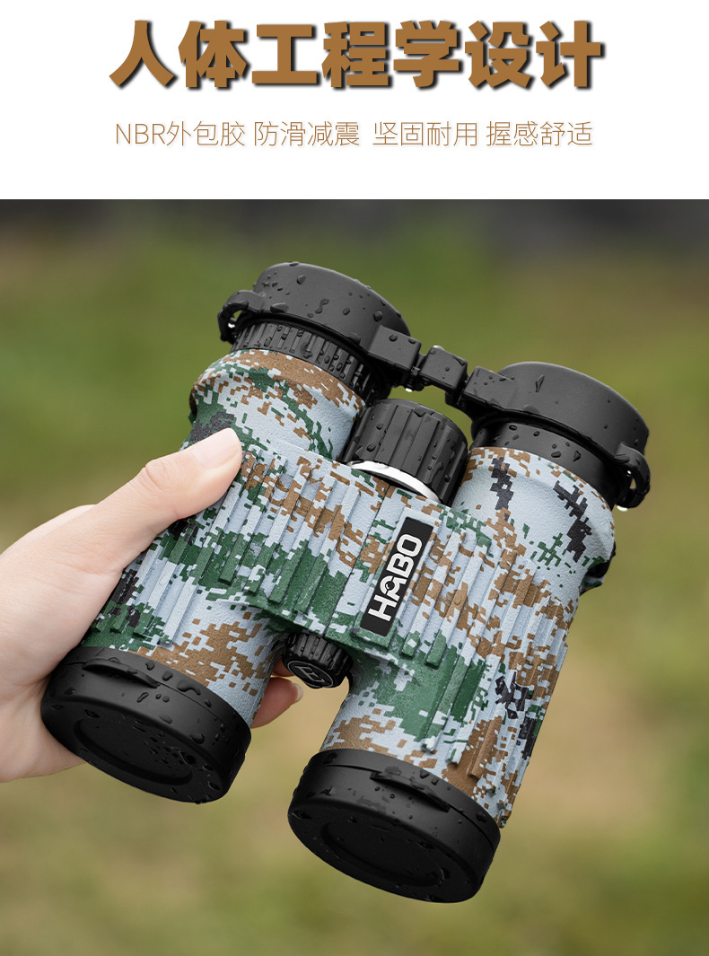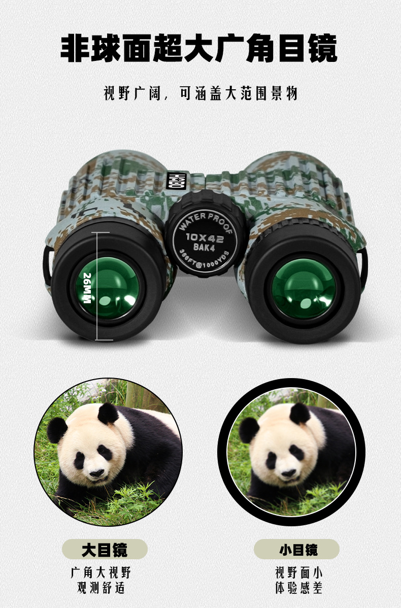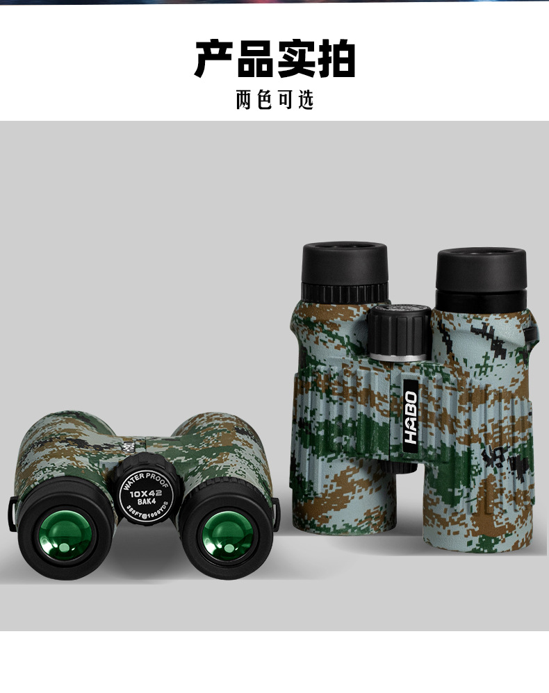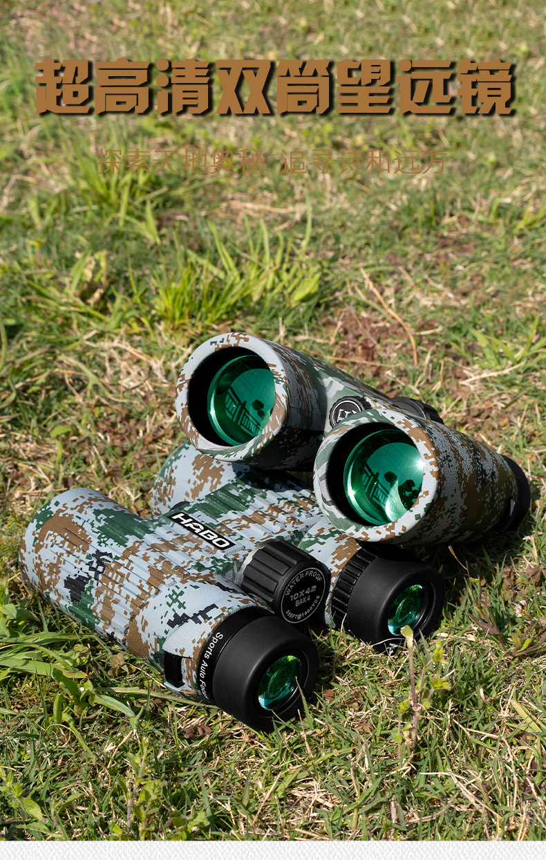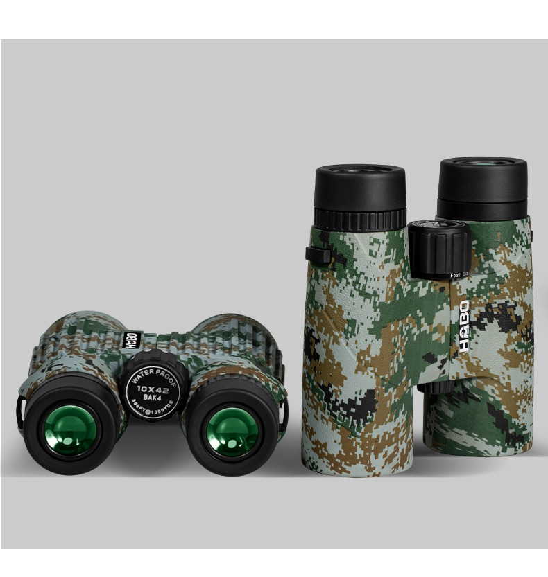Habo 10X42 Straight Binoculars, Camouflage Leather, High-Magnification, High-Definition, Low-Light Night Vision, Travel Portable, All-Metal