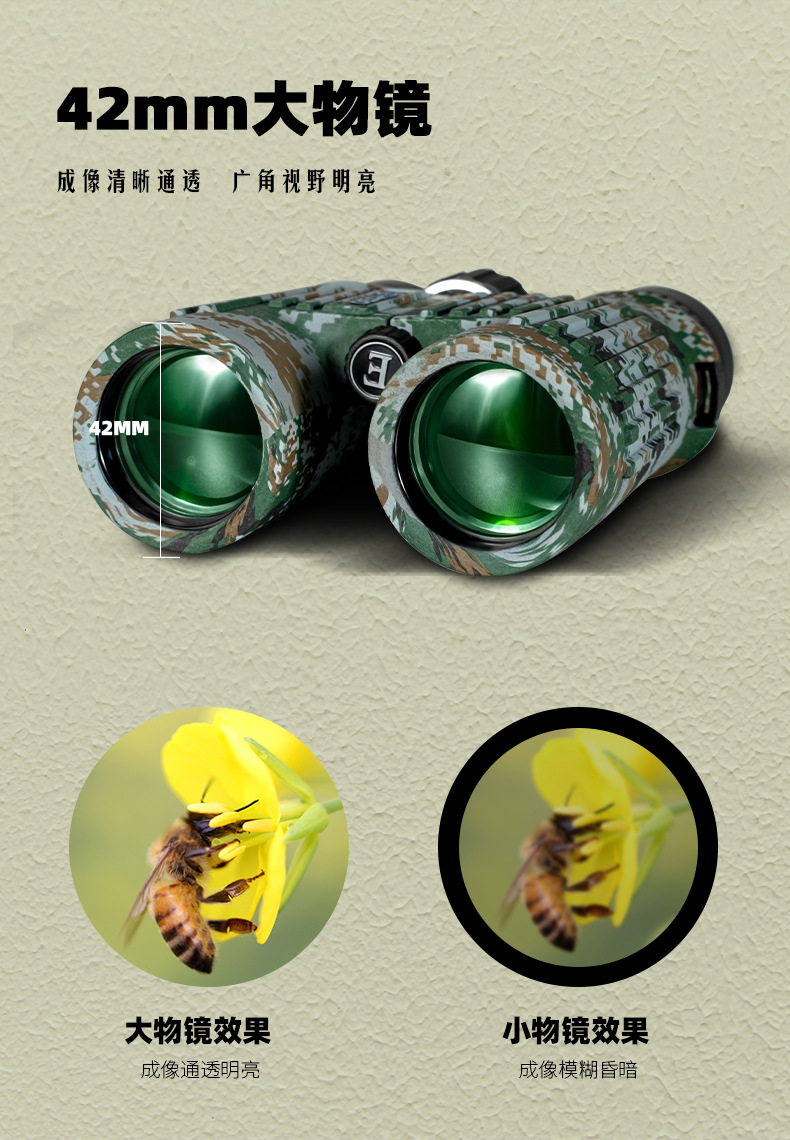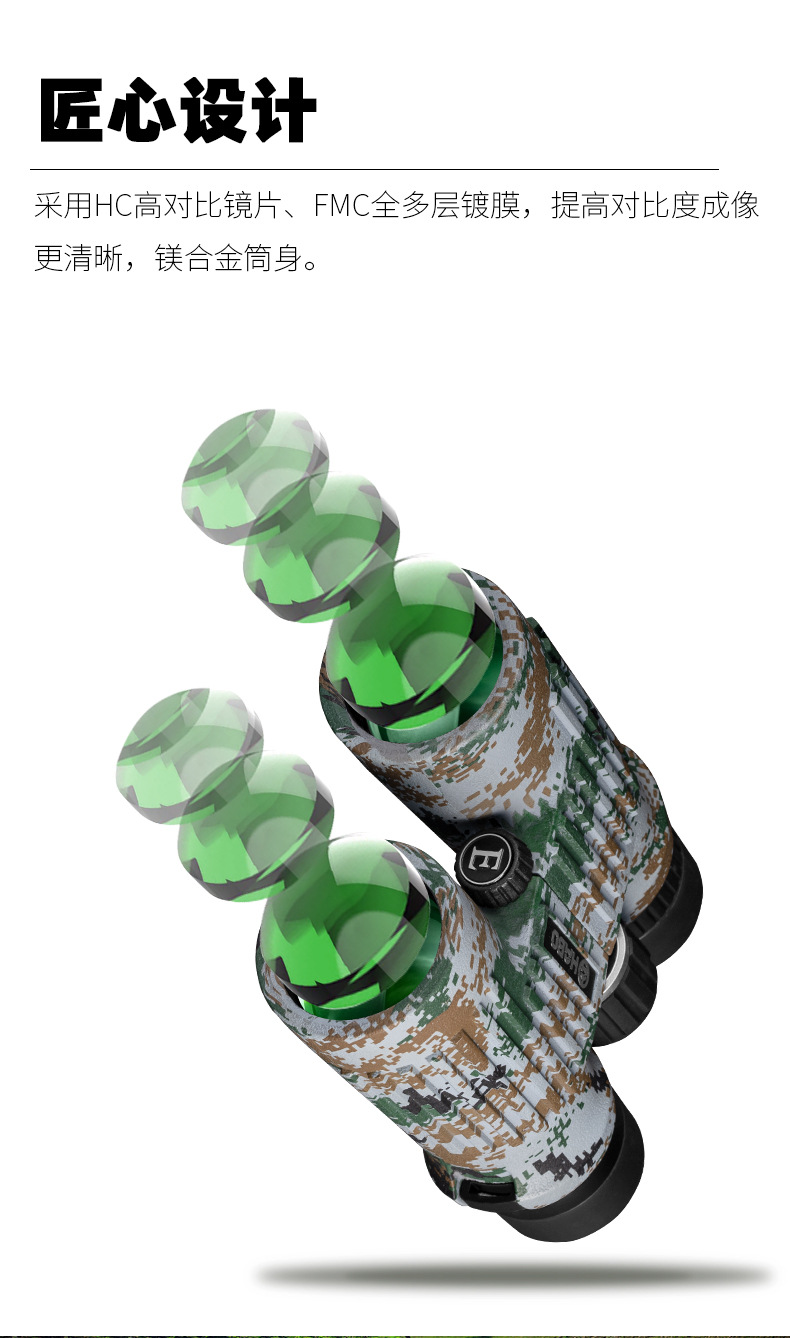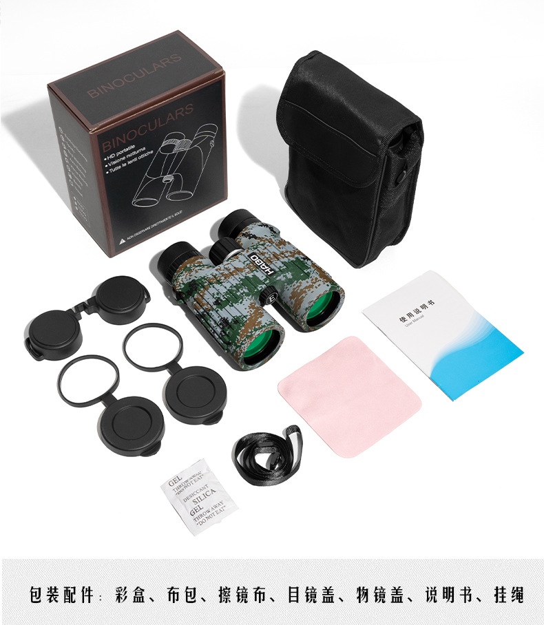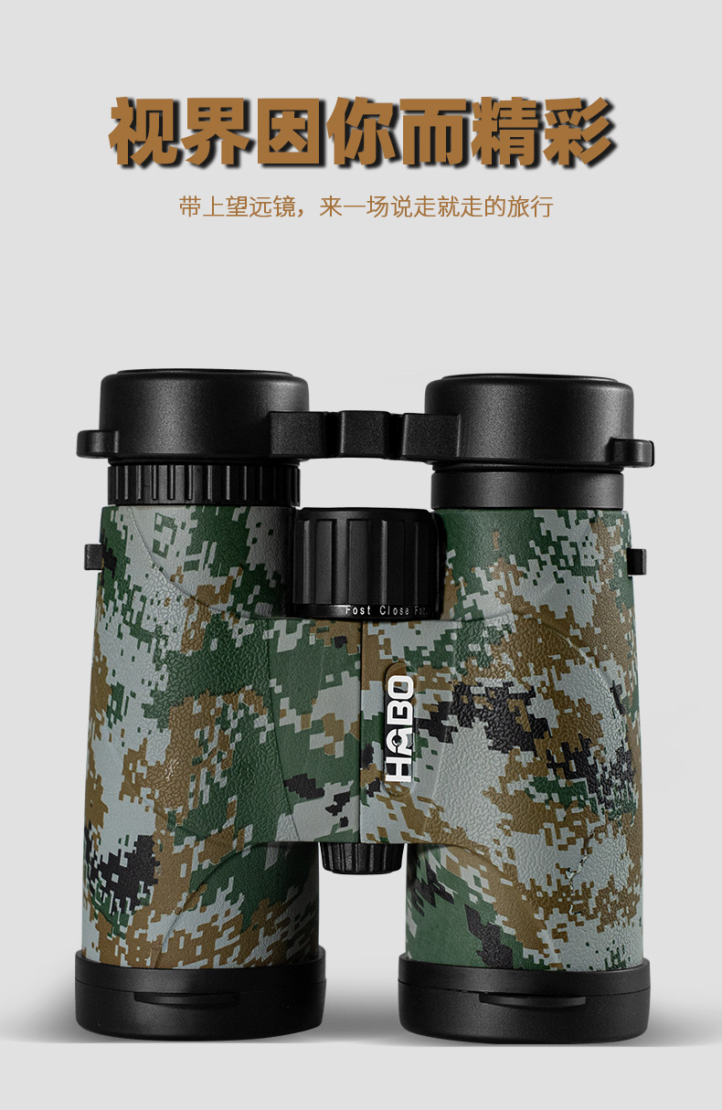 Habo 10X42 Straight Binoculars, Camouflage Leather, High-Magnification, High-Definition, Low-Light Night Vision, Travel Portable, All-Metal