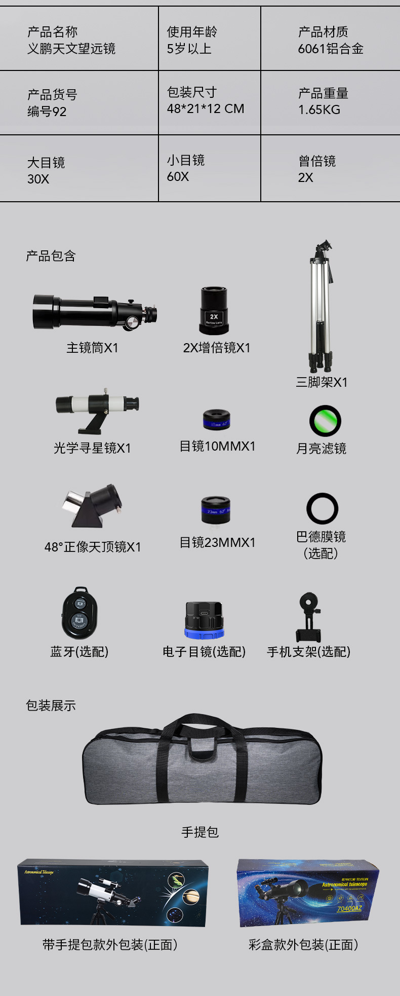 Habo/ Habo F70400 Astronomical Telescope White And Black High-Definition High-Power Star And Moon Observation Telescope Gift