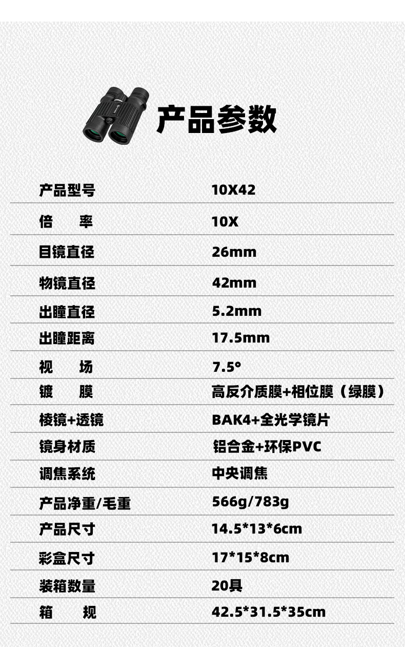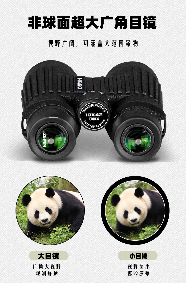 Habo's New 10X42 Straight Binocular High-Magnification High-Definition Low-Light Night Vision Travel Photography Metal Telescope
