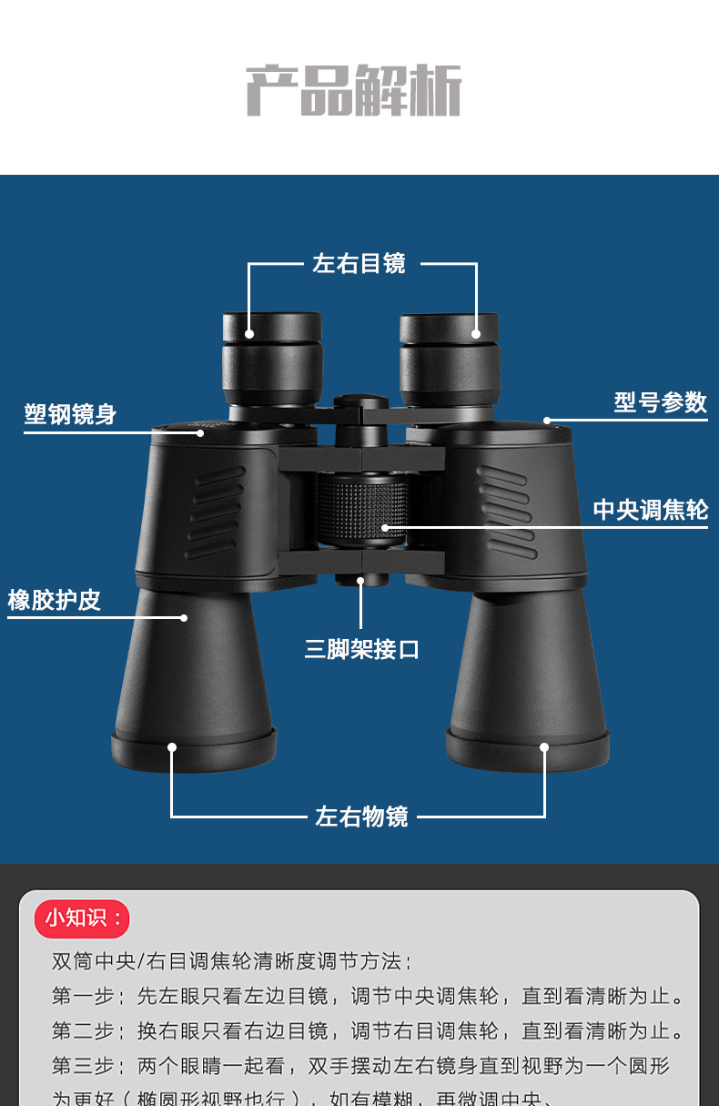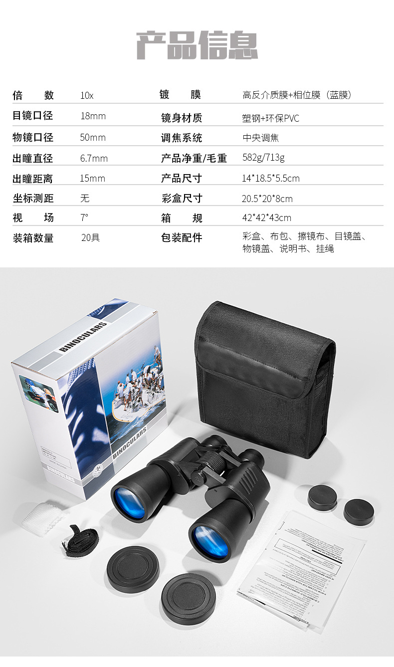 Manufacturer Wholesale 20X50 Binoculars Outdoor Travel High-Magnification High-Definition Coated Large-Aperture Objective Lens Binoculars