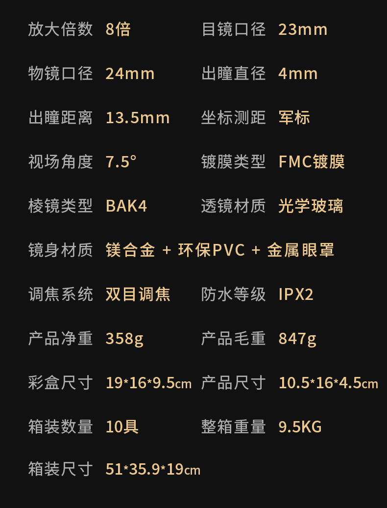 Mauser 8X24 Cowhide Packaged Red Bronze Bronze Low-Light Visible High-Definition Coordinate Distance Measuring Vintage Binoculars